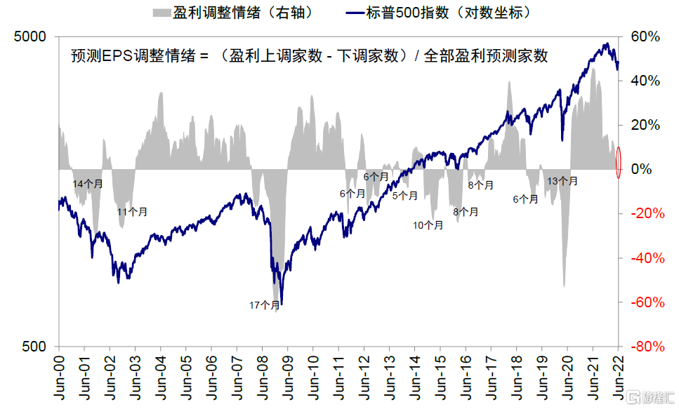 图表40:标普500指数盈利调整情绪从3月初的12.9%持续回落至当前的-0.4%