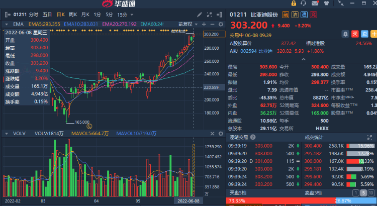 华盛资讯6月8日消息,比亚迪股份涨超3%,此前集团执行副总裁证实将为特斯拉供应电池。