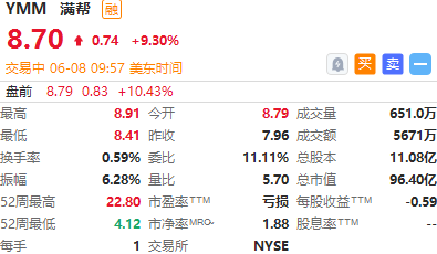 满帮 $YMM 盘中大涨逾9%,今天发布的2022年Q1财报,一季度实现营收13.3亿元,同比增长53.7%。非美国会计准则下实现净利润约1.9亿元,同比增长68%,盈利能力持续提升。