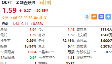 其他中概股,金融壹账通 $OCFT 涨幅扩大逾20%,消息面上,公司经董事会批准,将提高股份回购上限,由2%提升至3%。