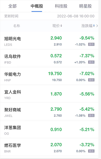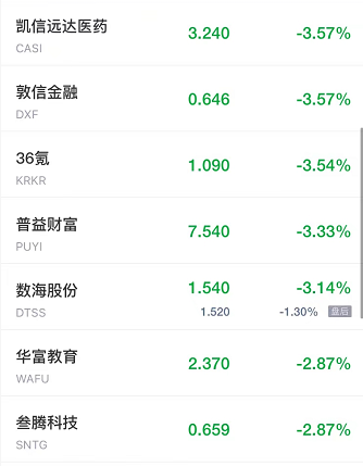 宜人金科、洋葱集团跌超5%,36氪跌超3%,中通、海亮教育跌超1%。