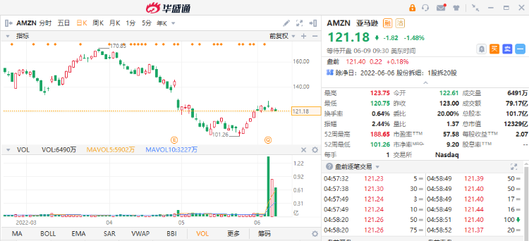 4、亚马逊 $AMZN 完成1999年来首次拆股,股价重回百元区间,拆股后流动性立刻骤升!华尔街分析师看好该股还能涨48.65%。