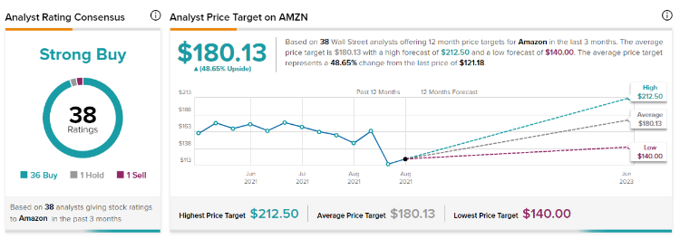 - 眼下不容忽视的是,从亚马逊最新的财报来看,当前公司正面临高通胀的考验,亚马逊CEO最新表示,供应链限制不会很快消失。不过,亚马逊仍然受到华尔街看好。MKM Partners分析师Rohit Kulkarni本周表示维持对亚马逊的“买入”评级,并将拆股后的目标价定为180美元。该分析师表示,仍然认为亚马逊是全球最多样化的互联网公司,也是在宏观环境、经济衰退、通货膨胀和供应链担忧中最好的“安全港”互联网股票。