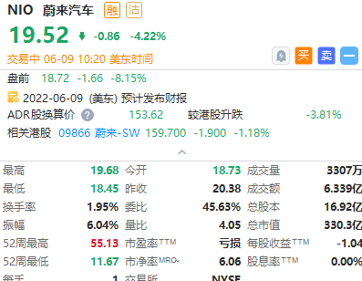 蔚来盘中跌超4%,Q1财报超预期,交付数量创历史新高,净亏损同比收窄。但受疫情因素影响,公司二季度营收指引不及预期。