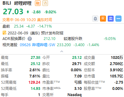 华盛资讯6月9日消息,中概股普遍走跌,其中哔哩哔哩跌超9%,公司第一季度调整后每股亏损大于预期。其主席兼首席执行官陈睿表示,疫情会给B站的广告、电商业务带来短期影响,在6月份后,这些影响会逐步降低。