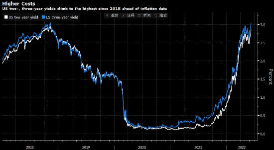 在美国5月通胀数据即将公布之际,短期美国国债收益率升至2018年11月以来最高水平。