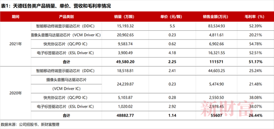 不同产品利润差别非常大,每颗DDIC毛利润大约2.88元,相当于63颗VCM Driver IC毛利润(每颗0.046元)。2021年,VCM Driver IC的价格不变,销量明显下滑,但因单价最低,毛利率也最低,未对公司营收和利润增长带来重大影响。