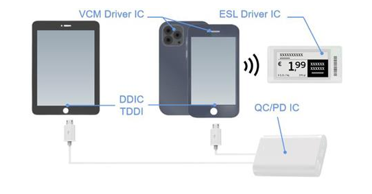 根据IC Insights预测,中国芯片市场规模在2023年将增至2230亿美元。在芯片大市场中,天德钰主营业务为移动智能终端领域的整合型单芯片的研发、设计、销售,其产品主要有四大类:智能移动终端显示驱动芯片(DDIC,含触控与显示驱动集成芯片,即TDDI)、摄像头音圈马达驱动芯片(VCM Driver IC)、快充协议芯片(QC/PD IC)和电子标签驱动芯片(ESL Driver IC)。这些产品广泛应用于手机、平板、智能音箱、智能穿戴、快充/移动电源、智慧零售、智慧办公、智慧医疗等领域(图1)。