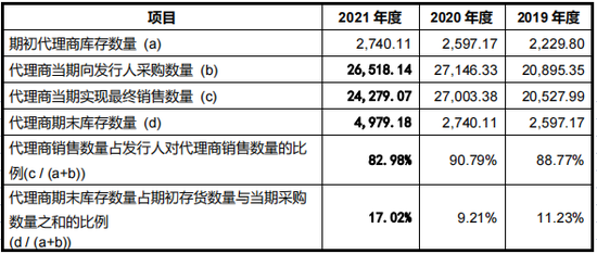 表9:天德钰代理商的进销存情况(单位:万颗)