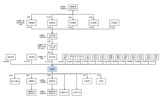 持股超过六成的股东恒丰有限,是天德钰的直接控股股东,也是天德钰创立时期的唯一股东,其为天钰科技(4961.TW)100%持股的孙公司,而天钰科技再向上穿透,则最终和台湾地区首富郭台铭旗下的鸿海精密(2317.TW)有关。鸿海精密通过宝鑫国际、鸿扬创业、鸿棋国际、鸿元国际4家公司,合计持股天钰科技超过27%股权(图3)。