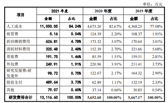至2021年底,天德钰仅有318名员工,其中研发人员220人,占比69%。其2021年研发费用1.31亿元,主要还是人工成本,超过1.1亿元(表5),相当于研发员工人均薪酬50万元。天德钰总部在深圳,即使在这科技行业的人才高地,该薪酬水平也有相当吸引力。