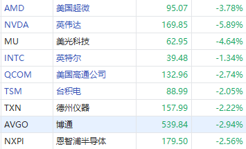 美股半导体板块走低,英伟达跌超5%,迈威尔科技、美光科技跌超4%,美国超微跌超3%,摩根士丹利今日下调多只半导体股票目标价。
