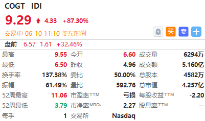 IDI $COGT 短线走高,现涨近90%,公司周五表示,其针对晚期系统性肥大细胞增多症(一种严重的血液疾病)患者的贝祖拉替尼2期试验显示出临床活性,总体耐受性良好。