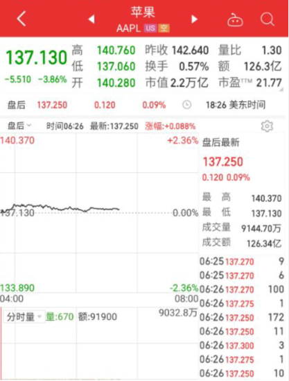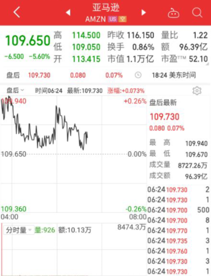大型科技股集体下挫,亚马逊(AMZN,股价109.65美元,市值1.1万亿美元)、英伟达(NVDA,169.74美元,市值4243.5亿美元)跌超5%,苹果(AAPL,股价137.13美元,市值2.2万亿美元)、特斯拉(TSLA,股价696.69美元,市值7217.8亿美元)跌超3%。