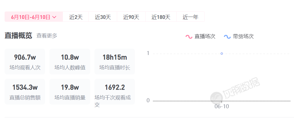 6月10日夜间的这场直播间场均观看人次达到13.5万人,直播总销售额达到30.1万。相较而言,东方甄选直播间的观看人次与销售额要高出许多。据第三方直播数据统计平台灰豚数据显示,东方甄选直播间10日晚间直播,峰值人数达到10.8万,直播商品数共125件,直播销量19.8万件,直播销售总额达到1534.3万元,相较首播成绩翻了近三倍。
