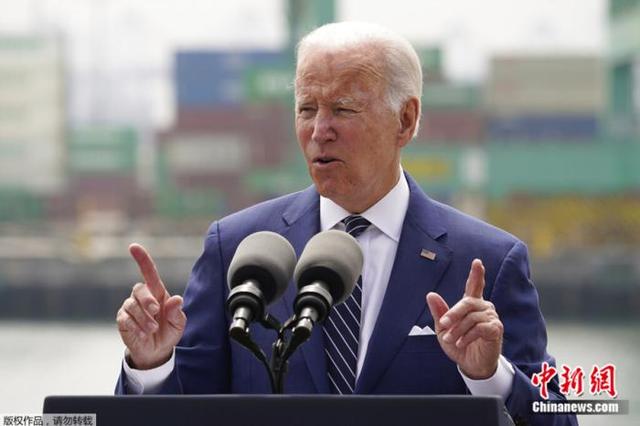 当地时间6月10日,美国总统拜登在洛杉矶就通货膨胀和供应链问题发表讲话。