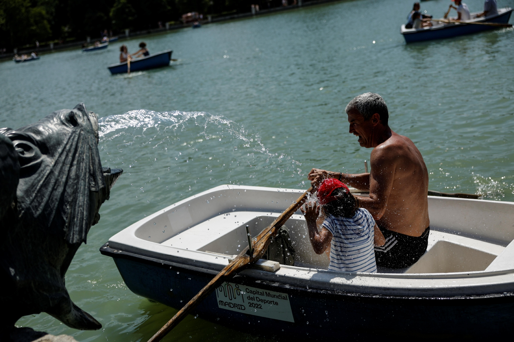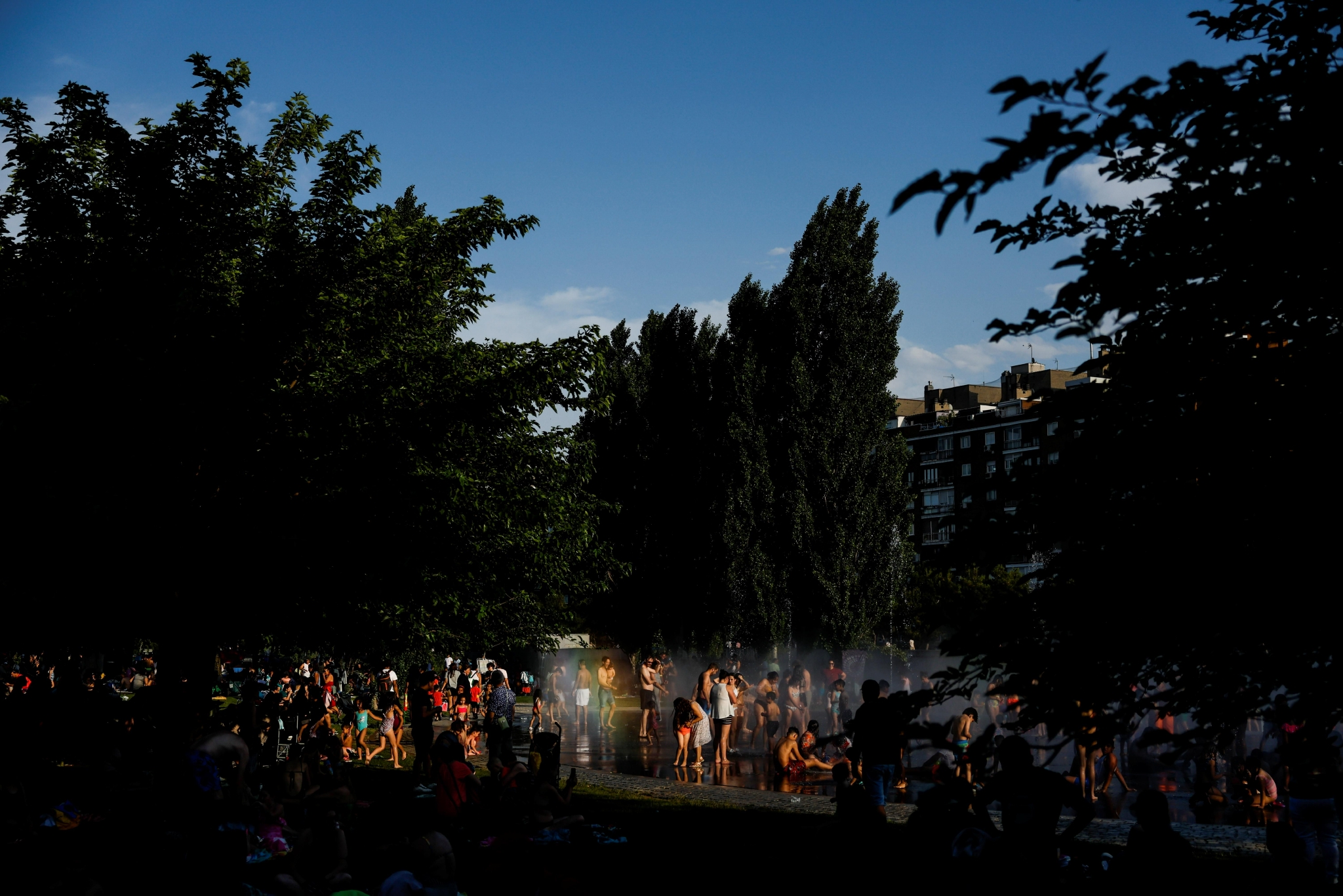 当地时间6月11日,西班牙马德里。民众戏水消暑。