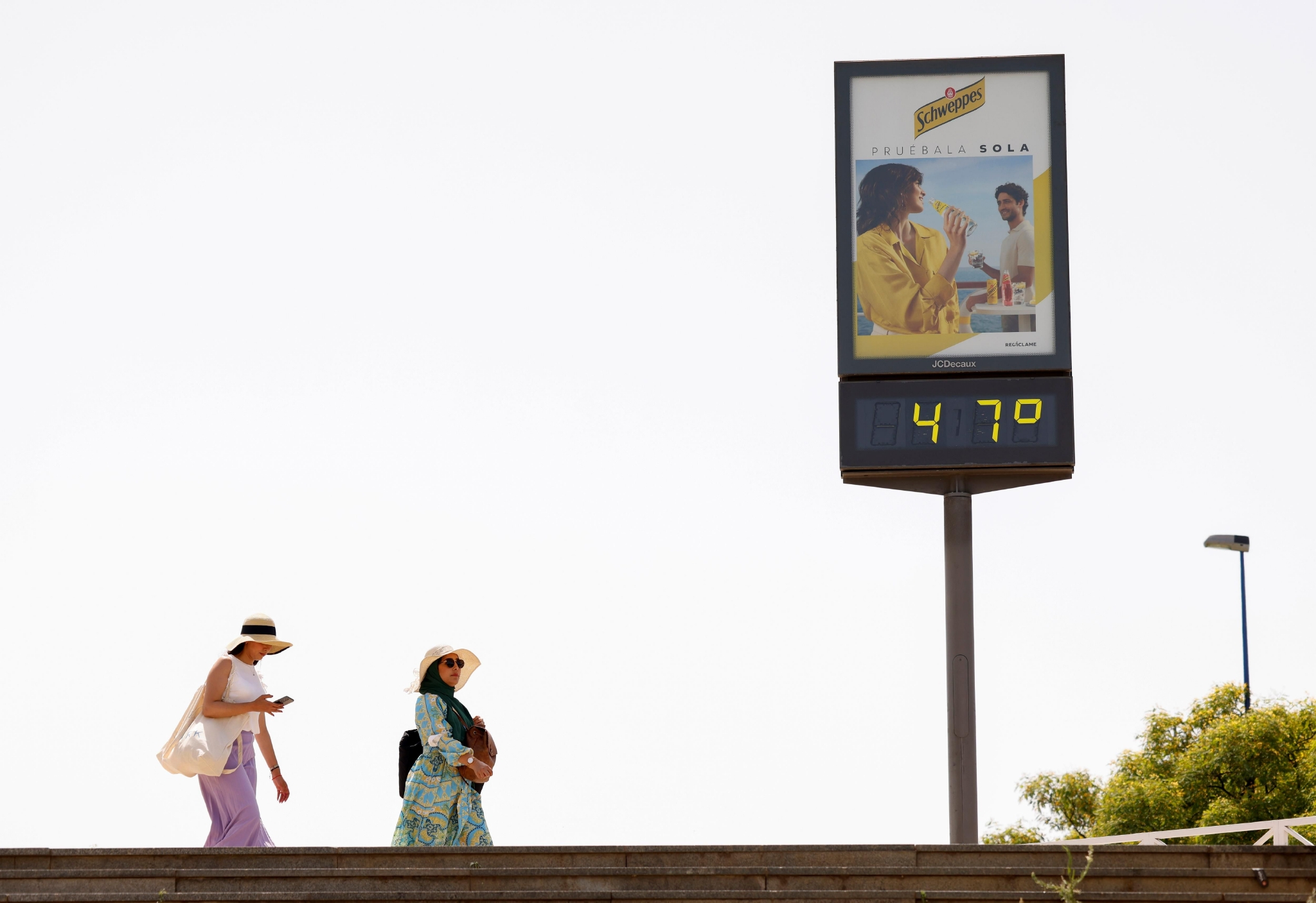 当地时间6月11日,西班牙塞维利亚。温度计显示气温高达47摄氏度。