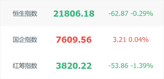 恒生指数上周涨3.43%,报21806.18点;恒生科技指数上周涨9.75%,报4826.42点;国企指数上周涨4.71%,报7609.56点。