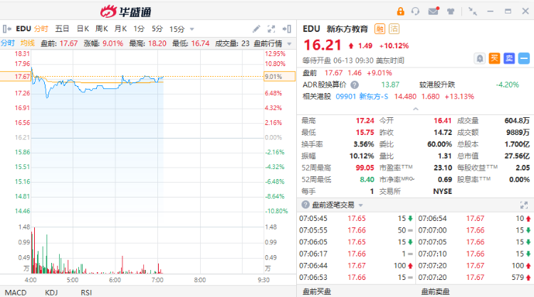 中概股盘前涨跌互现,知乎跌超6%,拼多多跌超5%,阿里跌超4%;新东方涨超10%,雾芯科技涨超5%。