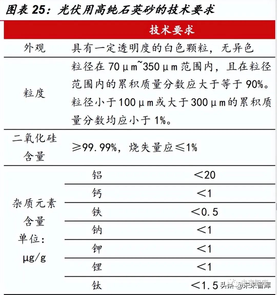 石英砂:为保证原片玻璃高透光,光伏玻璃含铁量比普通玻璃低,普通玻璃的铁 含量一般在 2000ppm 以上,光伏玻璃必须低于 150ppm,同时要求二氧化硅含量高。工业上成熟应用的石英需要经过分选、粗碎、煅烧、水淬、磨砂、筛选、磁选、浮选、 酸浸、洗涤、烘干等多流程工艺。未来将形成拥矿为王的局面。目前我国便于开采的优质低铁石英砂矿源较少,主 要分布在广东河源、广西、安徽凤阳、海南等地。未来随着太阳能电池用超白压花玻 璃产能的增长,产地分布有限的优质石英砂将成为相对紧缺的资源,当前石英砂价格 高达 450 元/吨,未来有可能进一步走高。我国进口石英砂主要来源于马来西亚、澳 大利亚和印尼,但受航运、物流等影响,进口石英砂缺乏稳定和可控,玻璃生产企业 若具有石英砂采矿权,将极大降低了原材料供给及价格波动风险。