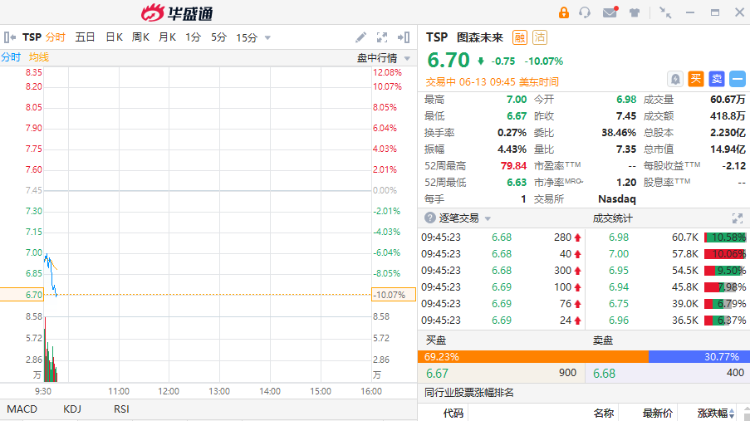 其他个股方面,好未来跌逾11%,图森未来跌超10%。
