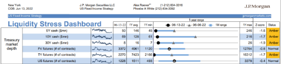 摩根大通一项衡量美国国债市场“流动性压力”的仪表板显示,衡量债市深度的指标闪烁“黄灯”,而不是表明流动性严重不足的“红灯”。