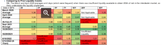交易商也警告说,他们购买和出售美债的能力在变差。 根据摩根士丹利的一份报告,5万美元美国国债的清理成本大幅上升。该行说,“市场发出警示信号,与2020年不同的是,现在没有央行作为后盾”。分析师们估计,近期美国短期国债的流动性甚至比2020年3月疫情引发大跌时更为糟糕。