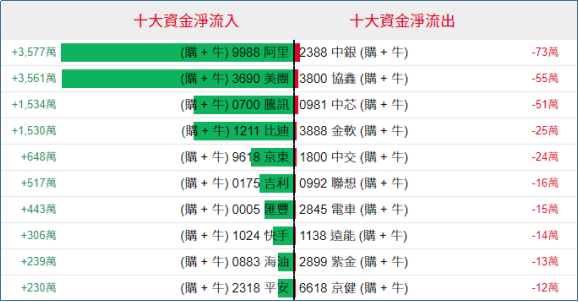 好仓(认购证及牛证)方面,周二阿里、美团、腾讯、比迪相关好仓单日分别录得约3577万港元、3561万港元、1534万港元、1530万港元资金净流入部署。