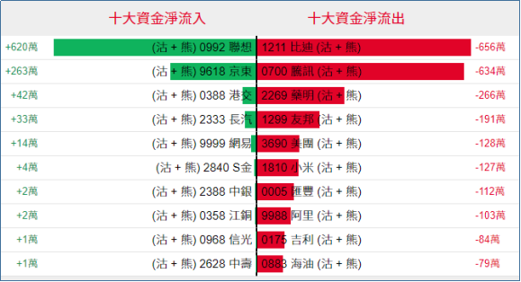 淡仓(认沽证及熊证)方面,周二联想相关淡仓单日获620万港元资金净买入,比迪、腾讯等相关淡仓单日分别获656万港元、634万港元资金净卖出。