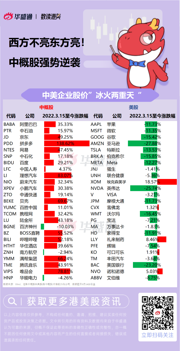 时间范围放大一点来看,中概股表现更是喜人:自3月15日以来,阿里涨超35%,京东涨近50%,理想汽车涨超80%,拼多多更是涨近140%!相比之下,苹果、微软、特斯拉等知名美股同期均跌超10%。