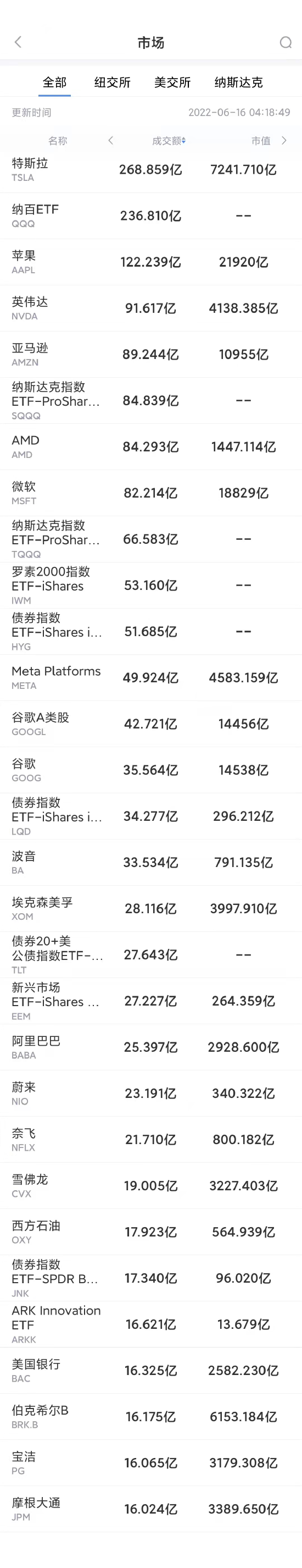 以下为美股当日交易最活跃的20只股票(按成交额):