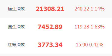 截至6月15日收盘,港股高开高走,午后涨幅收窄,截至收盘,恒生指数涨1.14%,报21308.21点;国企指数涨1.63%,红筹指数涨0.42%。