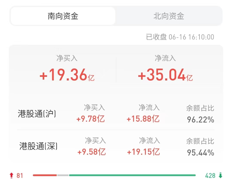 南下资金今日净买入港股19.36亿港元,其中港股通(沪)净买入9.78亿港元,港股通(深)净买入9.58亿港元。上一交易日净买入港股43.48亿港元。