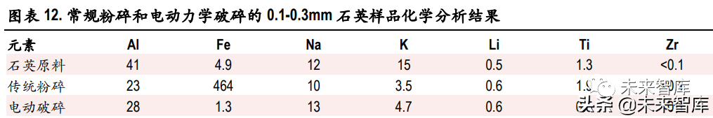 1)粉碎—分级预处理:预处理阶段目的是初步筛选杂质或将石英原料破碎到有利于杂质释放与后续 处理的所需的粒度,一般采用机械破碎、电动粉碎、光学分选、超声破碎、热冲击破碎等处理方式。