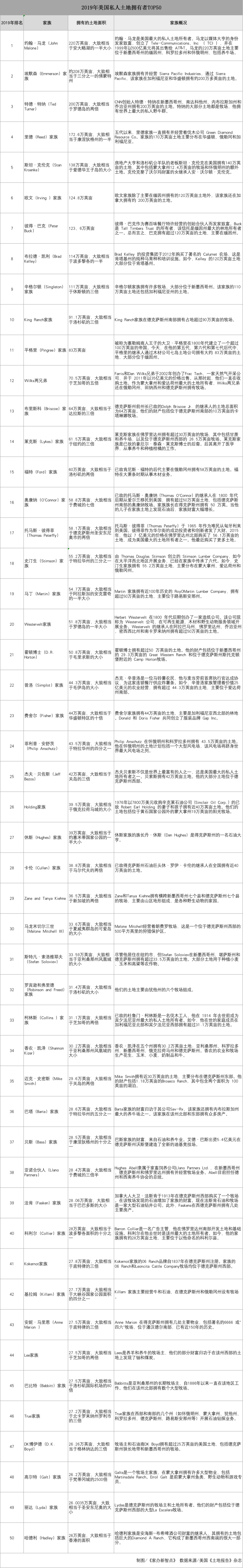 而排名前十位的私人土地拥有者共有超过1300万亩土地,占美国国土面积的0.5%以上。这些人中,一部分是家族继承人,早在1800年代就继承了祖先留下来的土地。其他人则是白手起家的富翁,在完成原始的财富积累后,开始不断收购土地。
