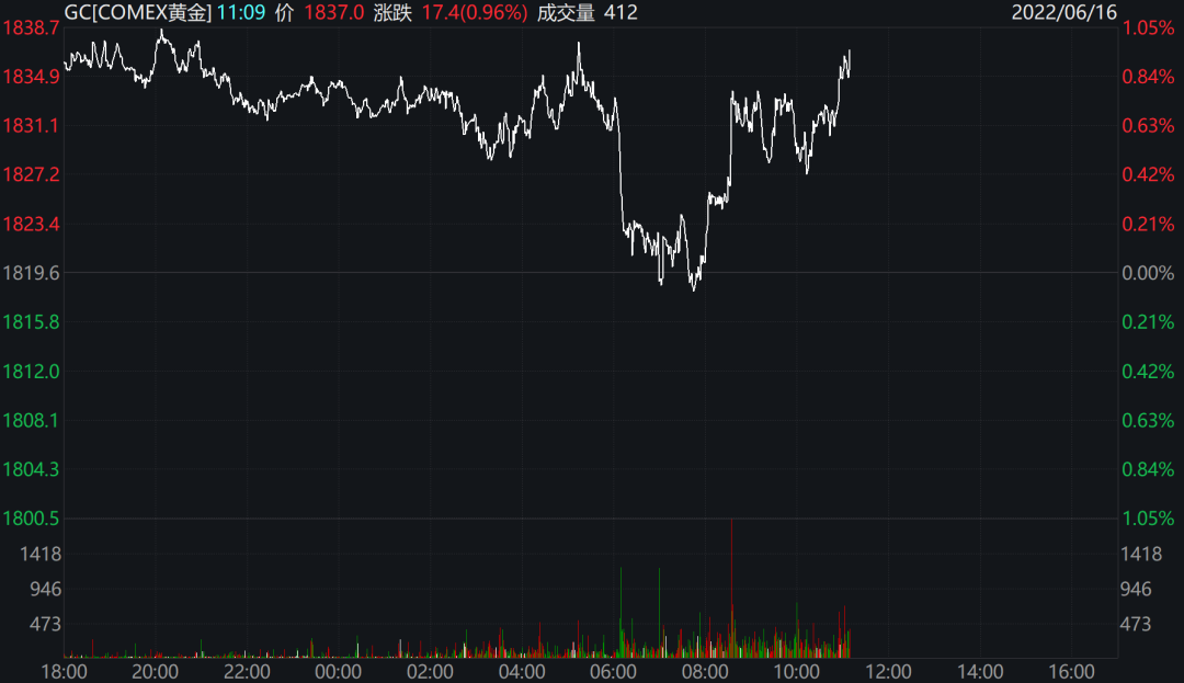 美、布两油短线涨幅扩大至逾2美元,现分别报114.73美元/桶和117.61美元/桶。COMEX黄金短线走高逾17美元,现报1837美元/盎司。