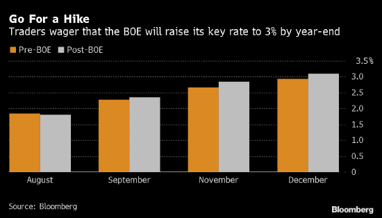 目前的定价显示,央行将需要在未来四次会议上把利率从当前1.25%上调1.75个百分点。
