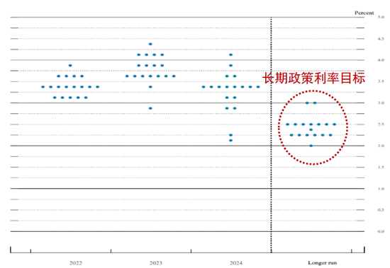 美联储会议加息75bp,未来3年加息路径大幅上调,但长期政策利率目标维持在2.5%: