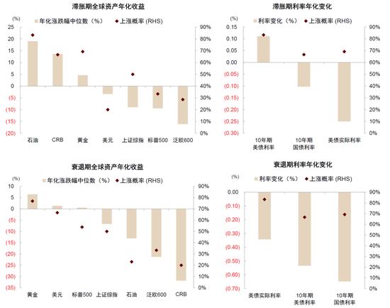 图表:增长下行时期黄金平均取得正收益和高胜率