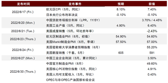 本周关注欧元区5月CPI数据以及日本央行利率决议(6月17日);下周关注中国LPR报价(6月20日),以及美国与欧元区PMI数据(6月23日)。