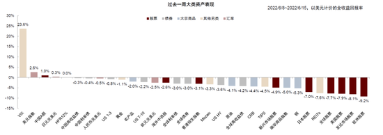 过去一周全球大类资产表现(2022/6/8-2022/6/16):