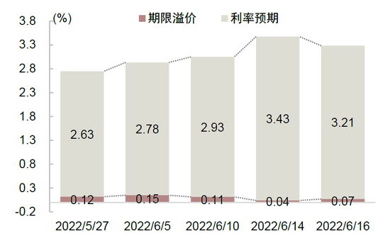 图表:5月份以来美债利率主要由加息预期推动,期限溢价上涨幅度较小
