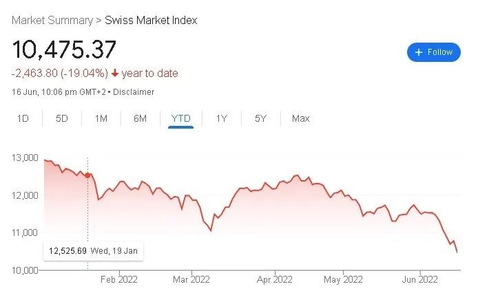 这给全球市场带来的惊吓太大了,作为全球两大主流避险货币,日元最近跌破20年新低,市场一致猜测日本央行要加息了,可黑田东彦就是固执的维持负利率,反而瑞士这边先出手了,而且一加就是50bp。投资者觉得这简直就是“哑巴都在喊衰退要来了”。所以周三即使美联储加息75bp美股也只是意思意思,但周四瑞士加息美股则大跌。瑞士本国股市也进入技术熊市,年初至今下跌20%。