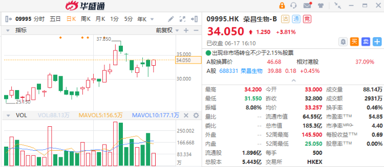 本周焦点: $09995.HK 荣昌生物-B