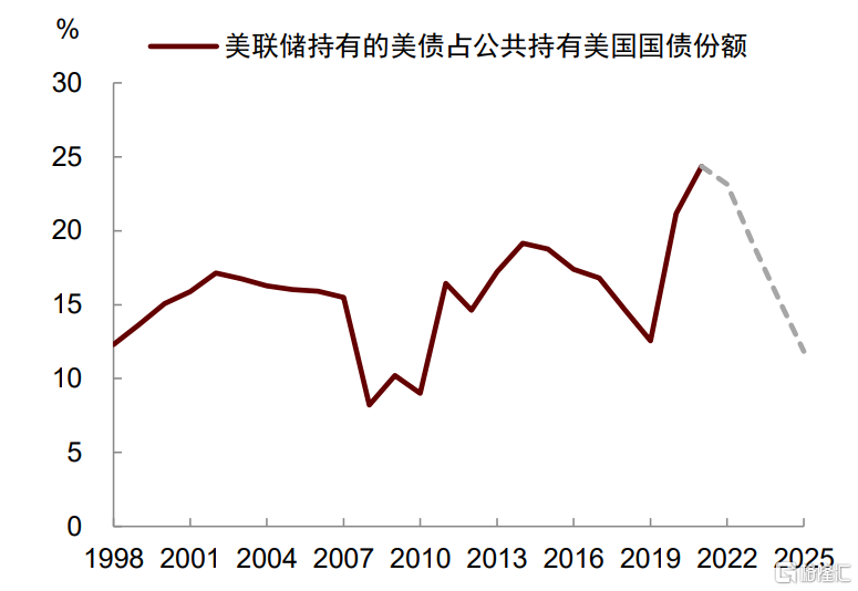 图表18:美联储持有的美国国债占比