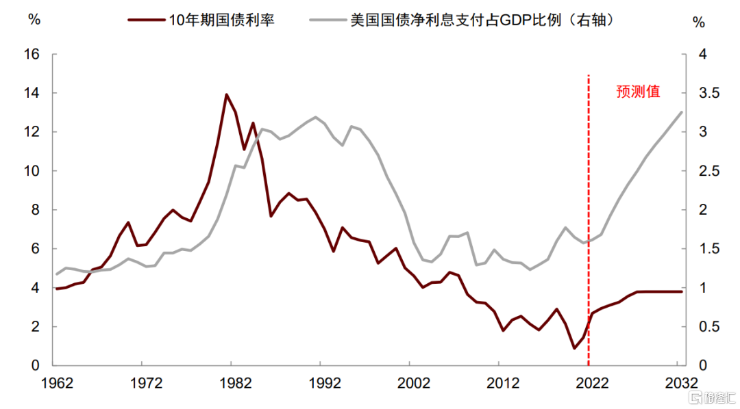 资料来源:CBO,美国财政部,中金研究院,中金公司研究部 注:净利息支付为美国政府国债付息额的GDP占比