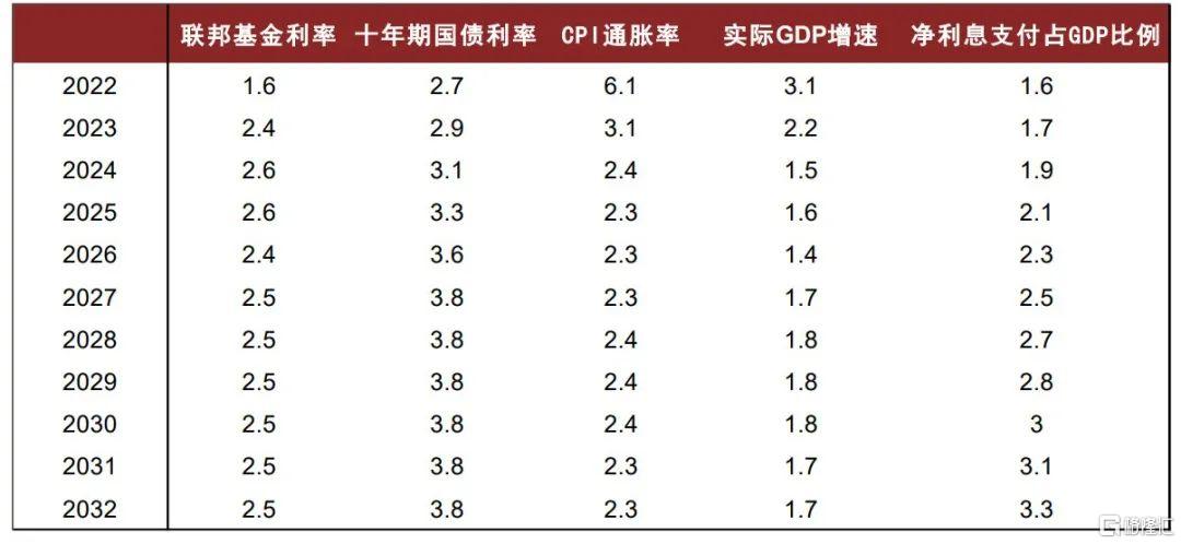 图表3:CBO对美国核心经济指标的预测,2022-2032年