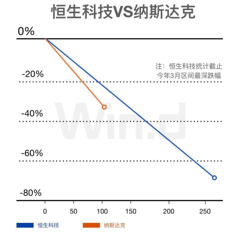 香港万得通讯社报道,恒生科技指数和纳斯达克指数走势一直非常趋同,但是从2020年中开始二者突然分道扬镳,纳指不断上升,恒升科技沉入海底,两年时间过去了,现在二者又走势又开始趋同。