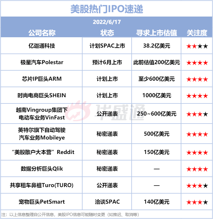 除了以上预计将在本周登陆美股市场的3只新股外,近期美股IPO市场值得关注的消息还有: